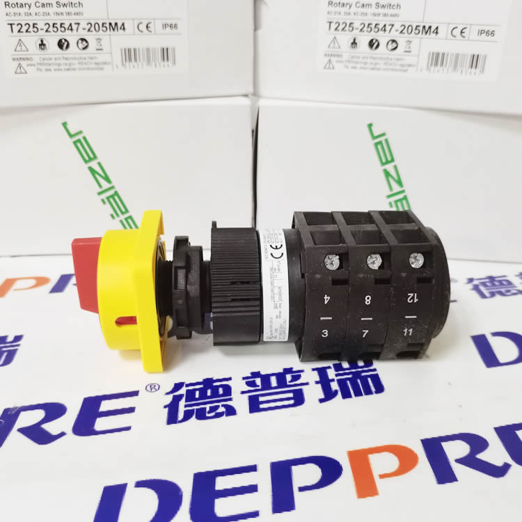 Salzer 的旋轉凸輪開關是手動操作、獨立可編程的控制開關,用于主電路和輔助電路,最多 24 個 觸點,并提供 30°、45°、60° 或 90° 的開關角度。 最多可提供 12 個開關位置。